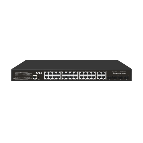 Switch di rete Layer 2 gestibile 24 porte PoE+ 1Gbps, 4 porte uplink 1Gbbps, 4 porte SFP Gbps.