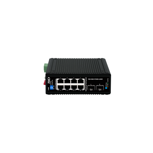 Switch di rete industriale 8 porte PoE+ 1Gbps, 2 porte SFP 1 Gbps.